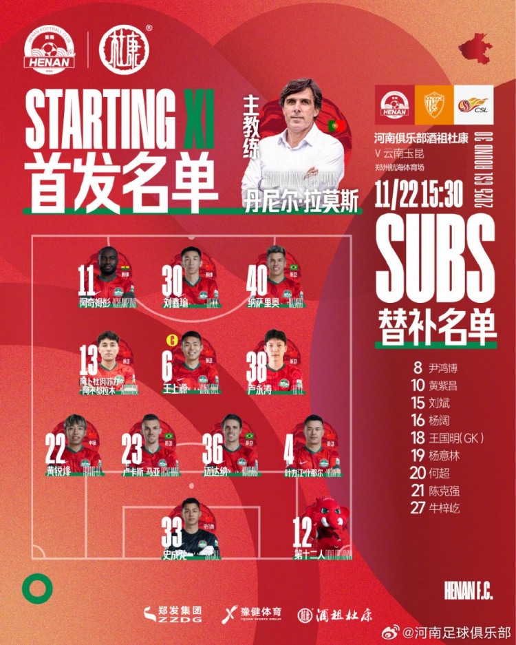 你的位置:全运会足球直播 > 德甲球队 > 2025中超联赛第30轮:河南俱乐部VS云南玉昆,首发及替补队员名单