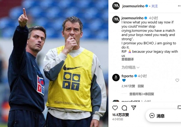 8月6日讯 前葡萄牙国脚、波尔图总司理若热-科斯塔在昨日因腹黑骤停弃世,仍是持教过他的穆里尼奥发文诅咒。