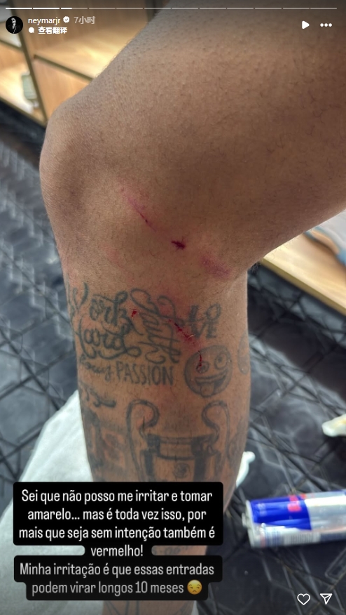 赛后内马尔晒出了我方腿部的像片,同期写谈:我知谈我不可不满,不可领黄牌。但这种情况每次皆可能发生,哪怕不是挑升的,也可能造成红牌。我系念这些犯规可能导致伤缺10个月