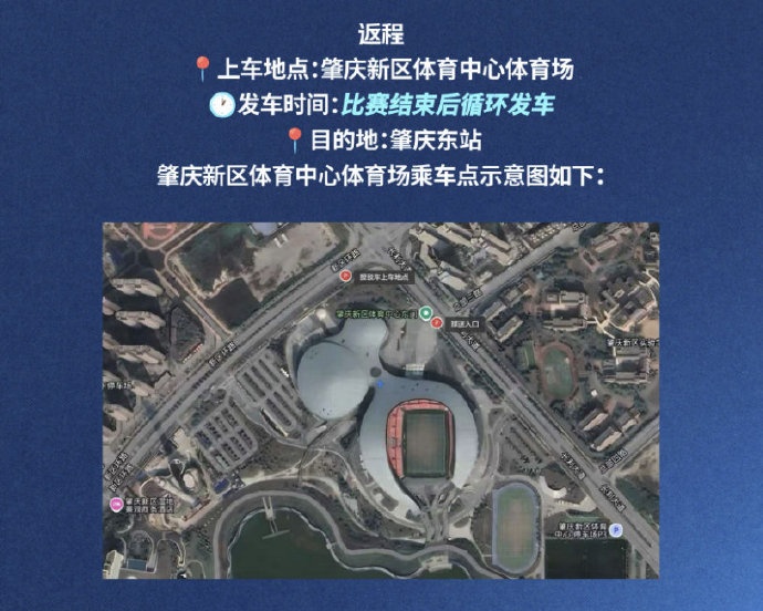 为便捷乘坐高铁或动车抵达的球迷前去不雅赛俱乐部高出安排由肇庆东站走动肇庆新区体育中心通顺场的免费接驳车职业。