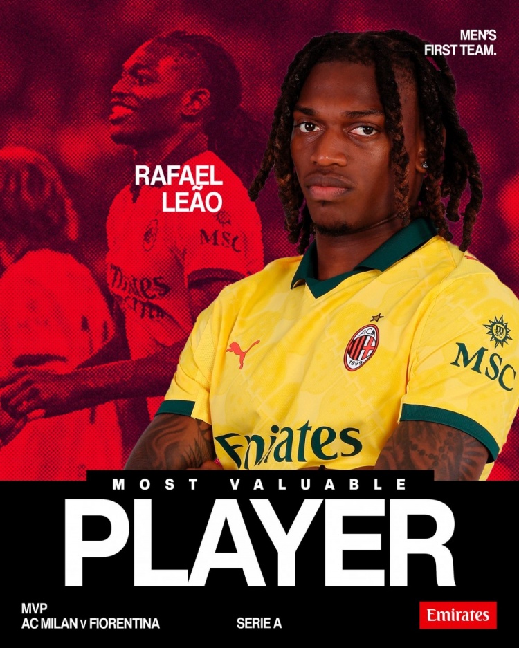 莱奥此役为米兰首发出战,梅开二度匡助球队取胜,米兰官方通知,他当选本场比赛队内最好球员。
