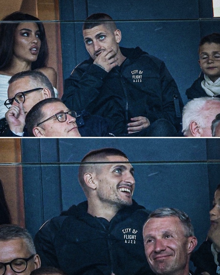 法甲官方社媒晒出相片,维拉蒂回到王子公园球场,现场不雅看老东家巴黎的这场比赛。