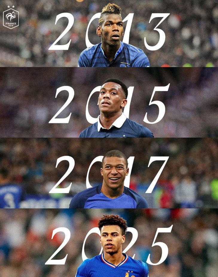 法国国度队官推也晒照写谈:“继博格巴、马夏尔、姆巴佩之后,杜埃是第四位取得金童奖的法国球员。”