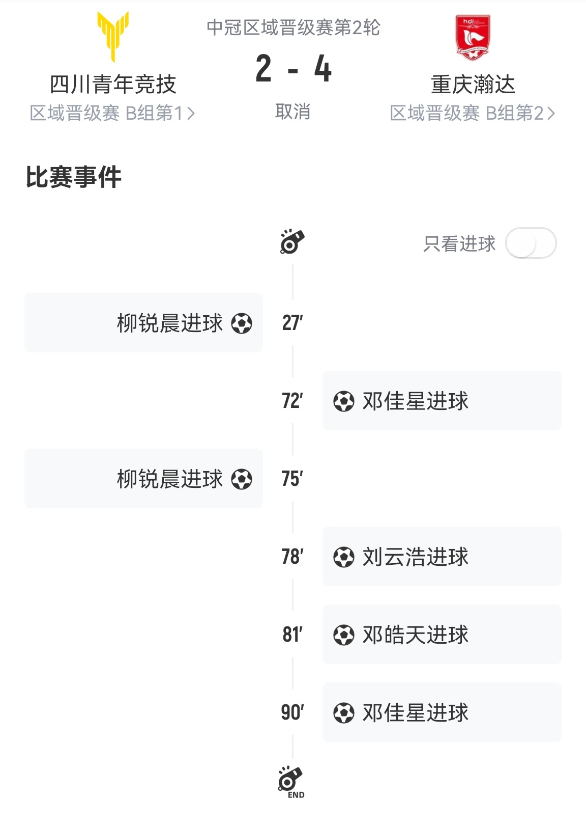 6月20日,中冠官方发布通报,6月3日中冠四川后生竞技 2-4 重庆瀚达的比赛中,经众人组评定,四川后生竞技队在该场比赛中非平时比赛(无望比赛)。