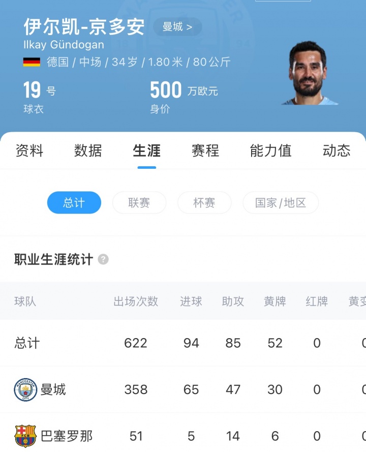 京多安现年34岁,现身价500万欧,他与曼城的合同来岁到期,上赛季他为曼城出场50次,孝顺3球7助。