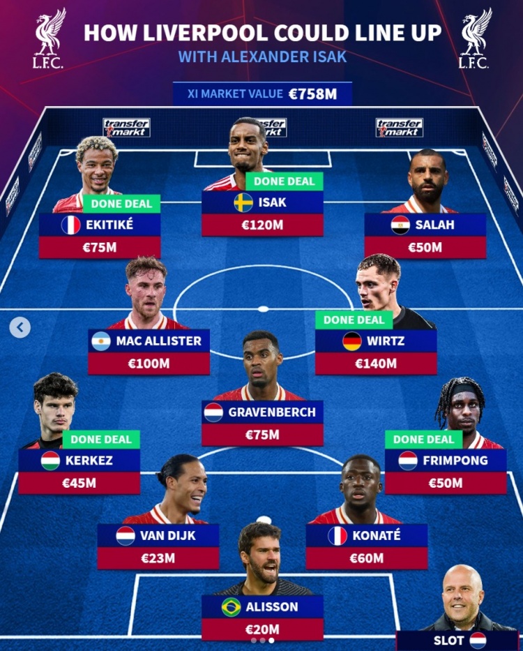 你的位置:全运会足球直播 > 法甲联赛 > 德转瞻望利物浦主力阵:伊萨克&维尔茨领衔5大新援,总身价7.58亿