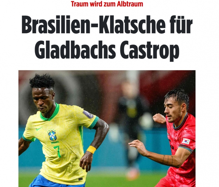 《图片报》以《好意思梦变恶梦:巴西队给门兴队的卡斯特罗普千里重一击》为题写谈:“门兴中场卡斯特罗普经历了好多孩子在街头足球或俱乐部青训时就梦思的场景:代表国度队参加对阵巴西队的比赛!