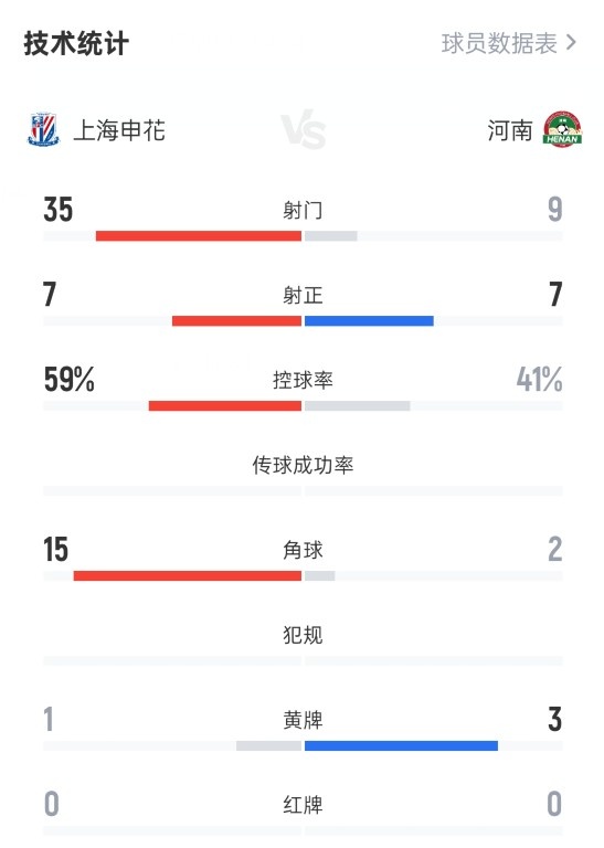 你的位置:全运会足球直播 > 法甲联赛 > 上海申花3-3河南全场数据:射门35-9,射正7-7,控球率59%-41%