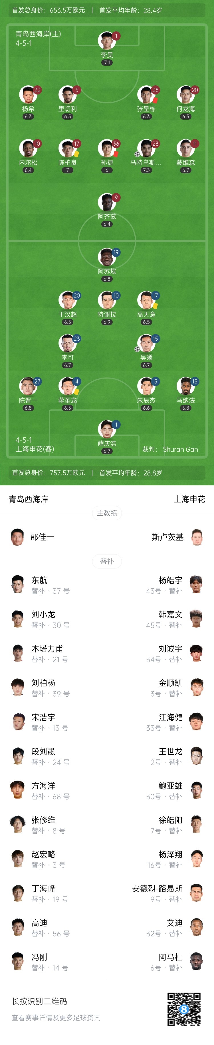 第20分钟,吴曦主罚点球破门,上海申花1-1扳平青岛西海岸↓