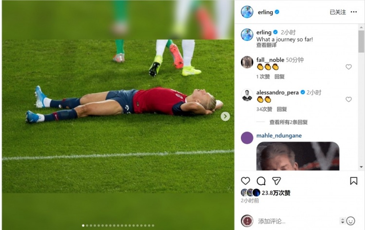 挪威队本届欧洲世初赛全胜出线,哈兰德社媒晒出多张像片,归来国度队糊口,配文:“这是一段何等玄妙的旅程!”