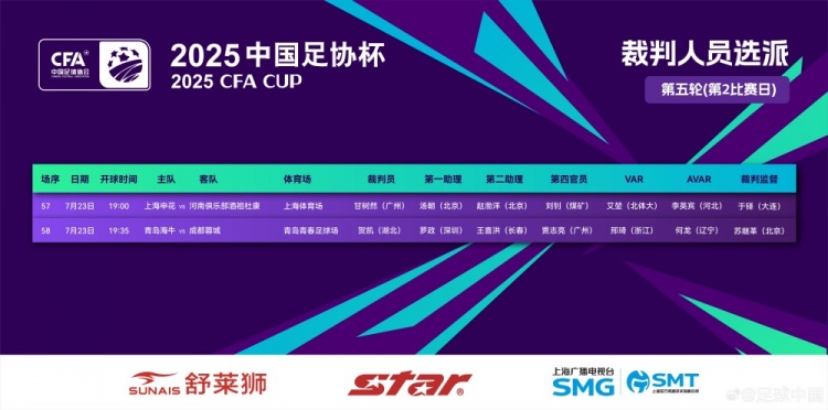 7月23日讯 足协杯当天张开临了两场1/4决赛的较量,裁判安排方面,甘树然功令申花vs河南队的比赛。
