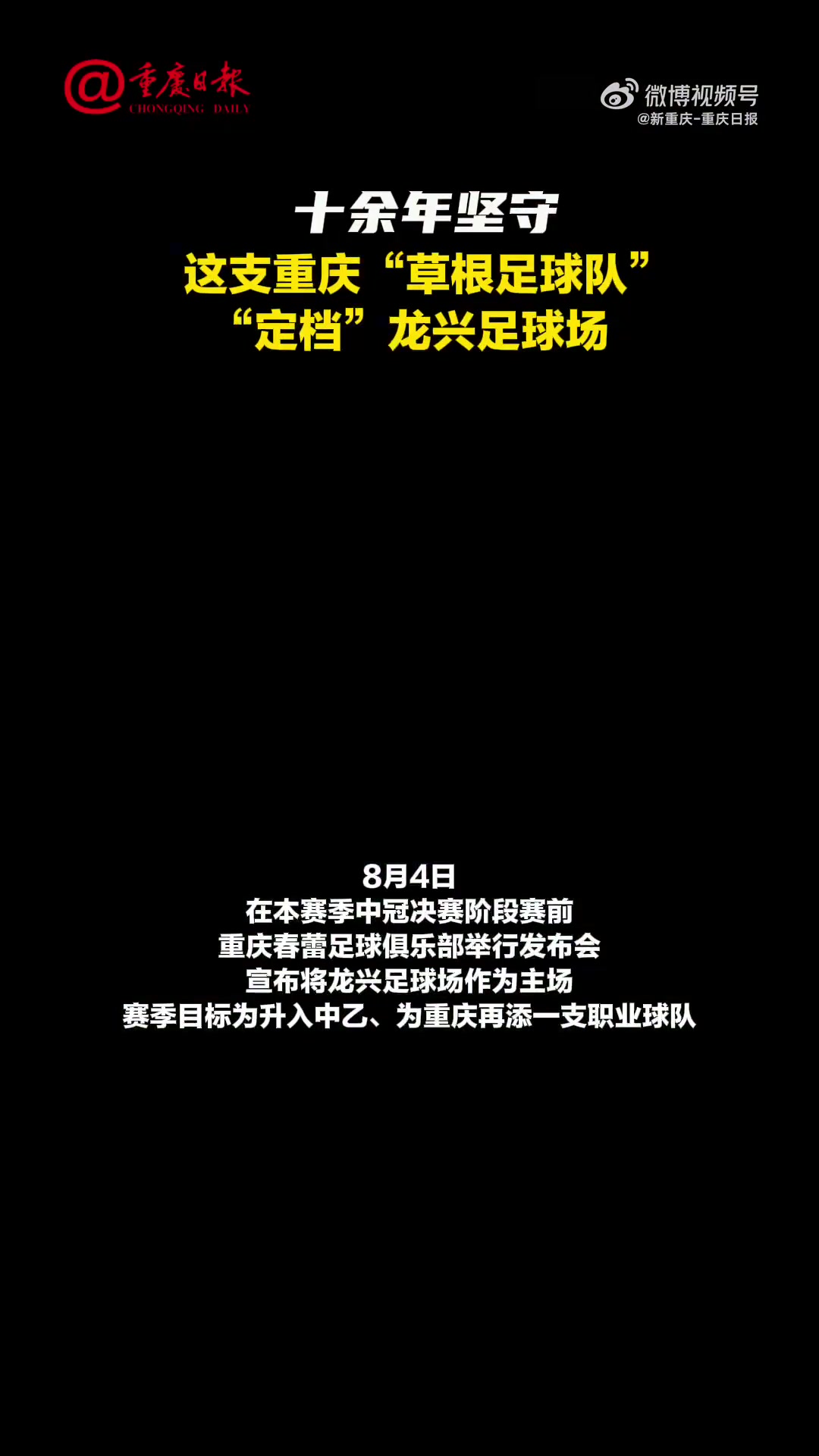 8月4日,在本赛季中冠决赛阶段赛前,重庆春蕾足球俱乐部举行发布会通知将龙兴足球场手脚主场,赛季策画为升入中乙、为重庆再添一支办事球队。