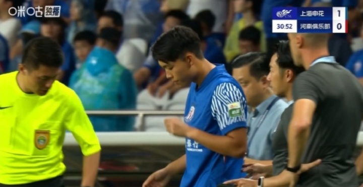 07月27日讯 申花vs河南第32分钟,朱辰杰被金顺凯替换下场,此前球员争抢头球时受伤。
