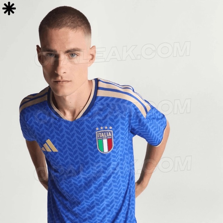 10月24日讯 footyheadlines曝光了意大利队2026年新款主场球衣谍照,该球衣领受蓝金配色决策,以记念意大利天下杯夺冠20周年。