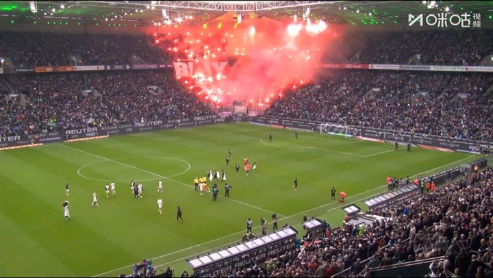 10月25日讯 当天德甲拜仁客战门兴,赛前拜仁球迷看台亮出tifo,并放烟花烽火看台!