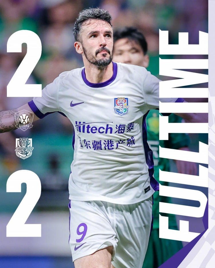 全场比赛落幕,凭借基莱斯的梅开二度,津门虎队作客2:2战平北京国安。