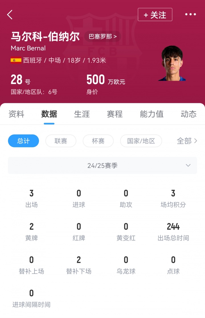 前交叉韧带伤病缩小了伯纳尔上赛季本应完了的结巴。这位18岁的防御中场在赛季前三场比赛首发,但随后因伤息兵。他形体肥硕,战略果断尖锐,控球安定,不能幸免地被与塞尔吉奥·布斯克茨同日而言。