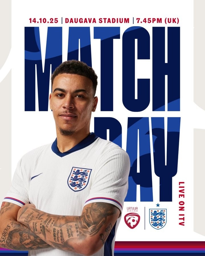 英格兰官推配文:“三狮军团在拉脱维亚,让咱们用一个好效果界限十月海外比赛日征途。”