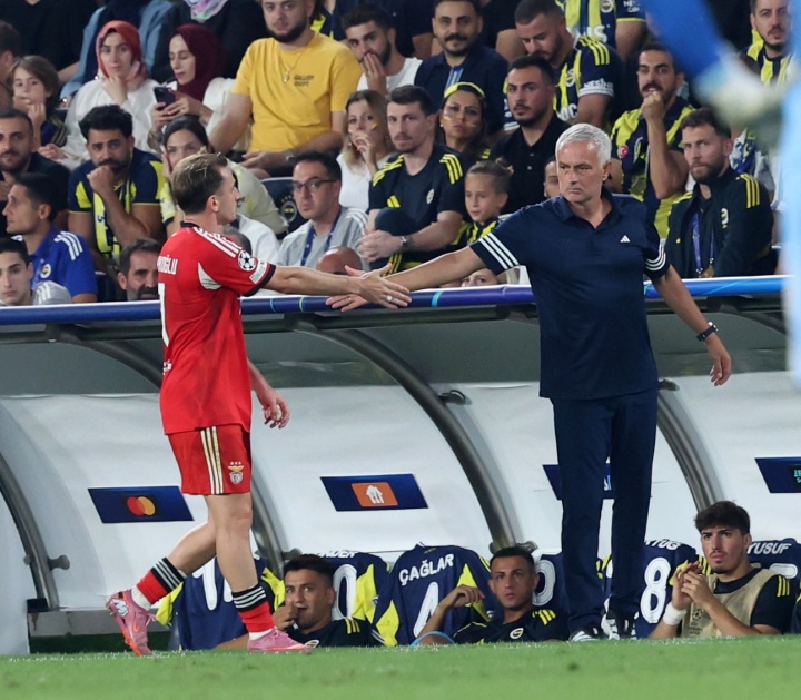 本年夏窗,穆里尼奥持教的费内巴切曾屡次求购本菲卡先锋阿克蒂尔克奥卢,在欧冠阅历赛中,费内巴切两回合总比分0-1负于本菲卡,恰是阿克蒂尔克奥卢打入唯独进球。比赛为止后穆里尼奥下课,费内巴切破耗2250万欧元,签下了淘汰我方的阿克蒂尔克奥卢,穆里尼奥则出任了本菲卡的主帅。