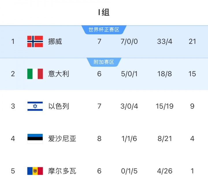 当今挪威在先赛一场的情况下卓越意大利6分,淌若意大利在晚些的比赛中未能打败摩尔多瓦,那么挪威将凯旋晋级天下杯。就算意大利校服摩尔多瓦,况且在临了一轮与挪威的凯旋对话中取胜使两队积分换取,但两队之间还存在19个净胜球的雄壮差距,不错说挪威仍是基本上晋级了天下杯。