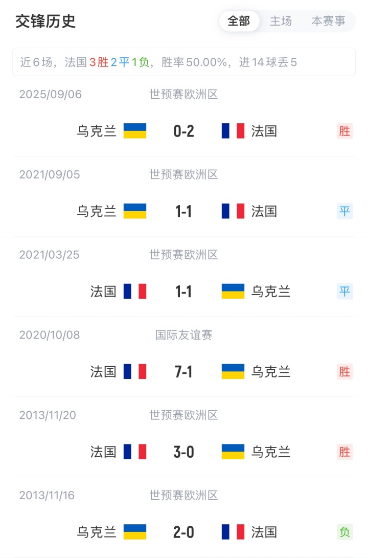 法国世初赛3胜1平积10分暂位D组第一;乌克兰2胜1平1负积7分暂位第二,近3轮不败。本场若法国投降乌克兰,就将提前一轮晋级天下杯。法国正赛对阵乌克兰已判辨4场不败(2胜2平)。