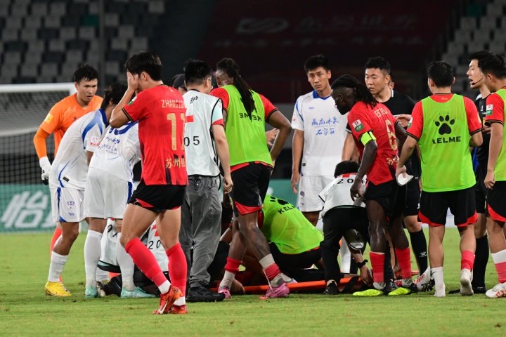 中甲第20轮,苏州东吴1-1石家庄功夫。比赛第92分钟,比赛突发现象,苏州东吴球员胡靖已而倒地。