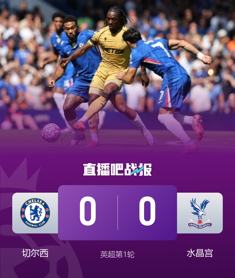 08月17日讯 刚刚阻抑的英超首轮一场比赛,切尔西主场0-0闷平水晶宫。