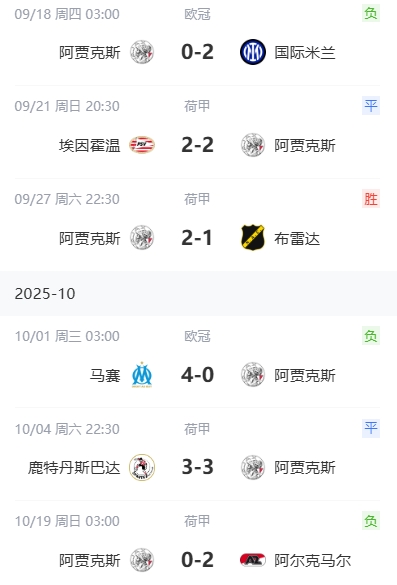 阿贾克斯此前战绩: